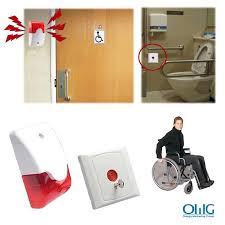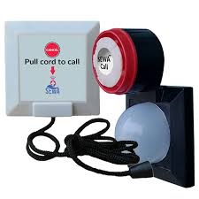a device, usually a button, that can be pressed to call for help when somebody is in a dangerous situation